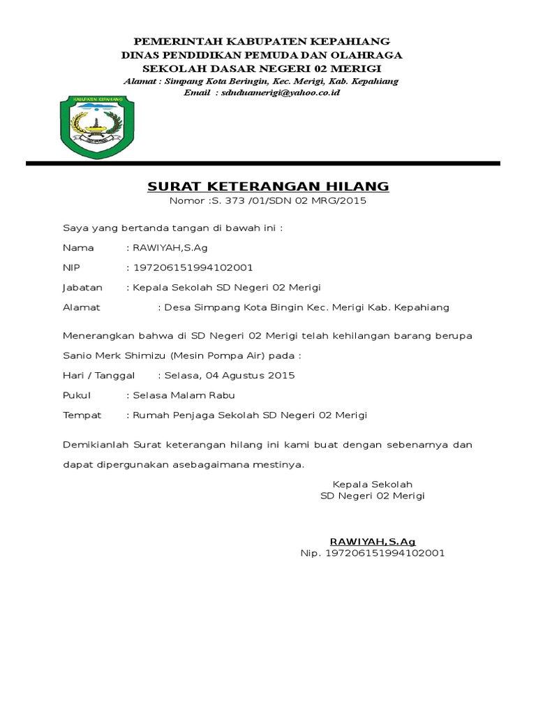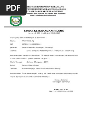 Contoh Surat Kehilangan Barang Di Sekolah